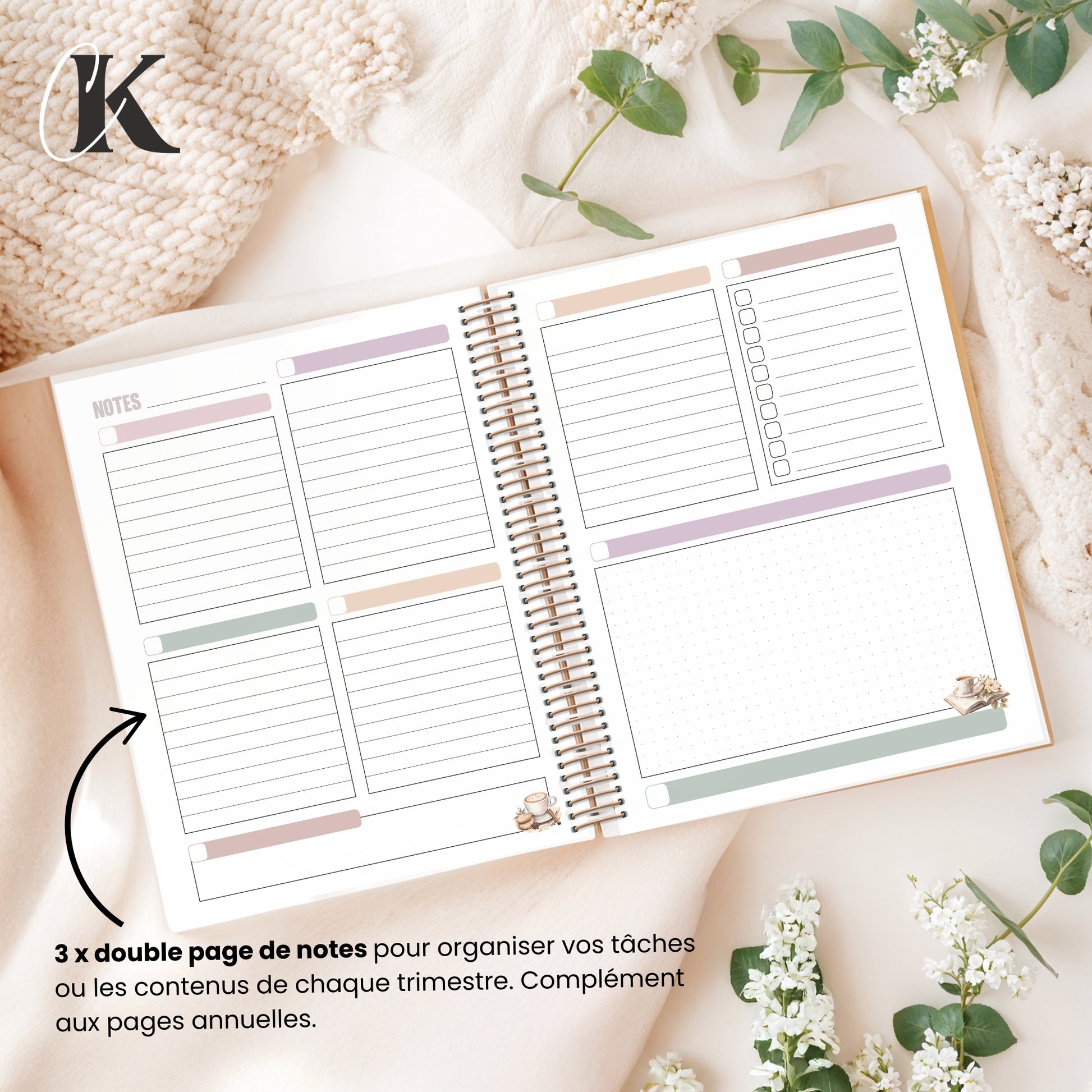 - Une page de notes (utilisable en début ou en fin de mois)