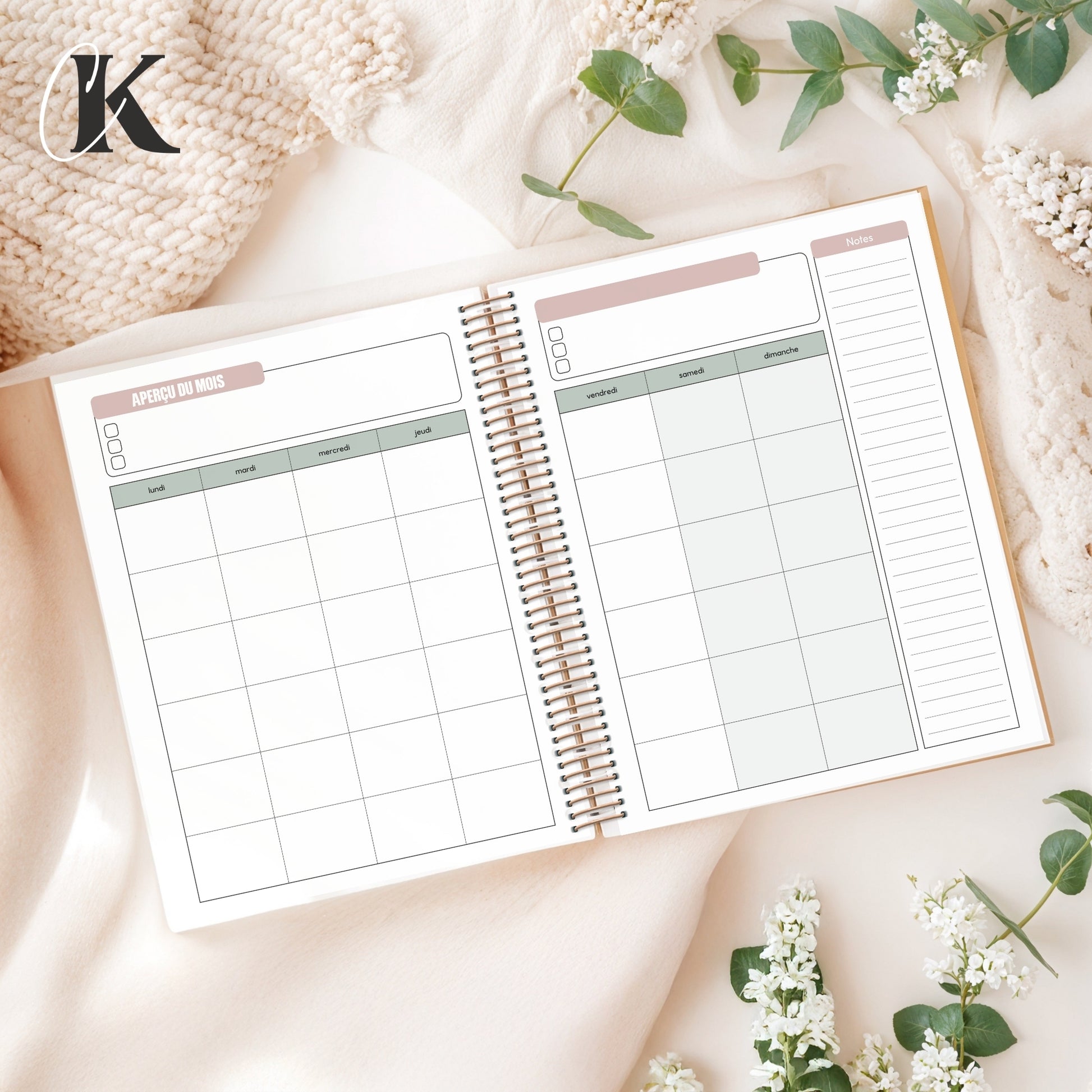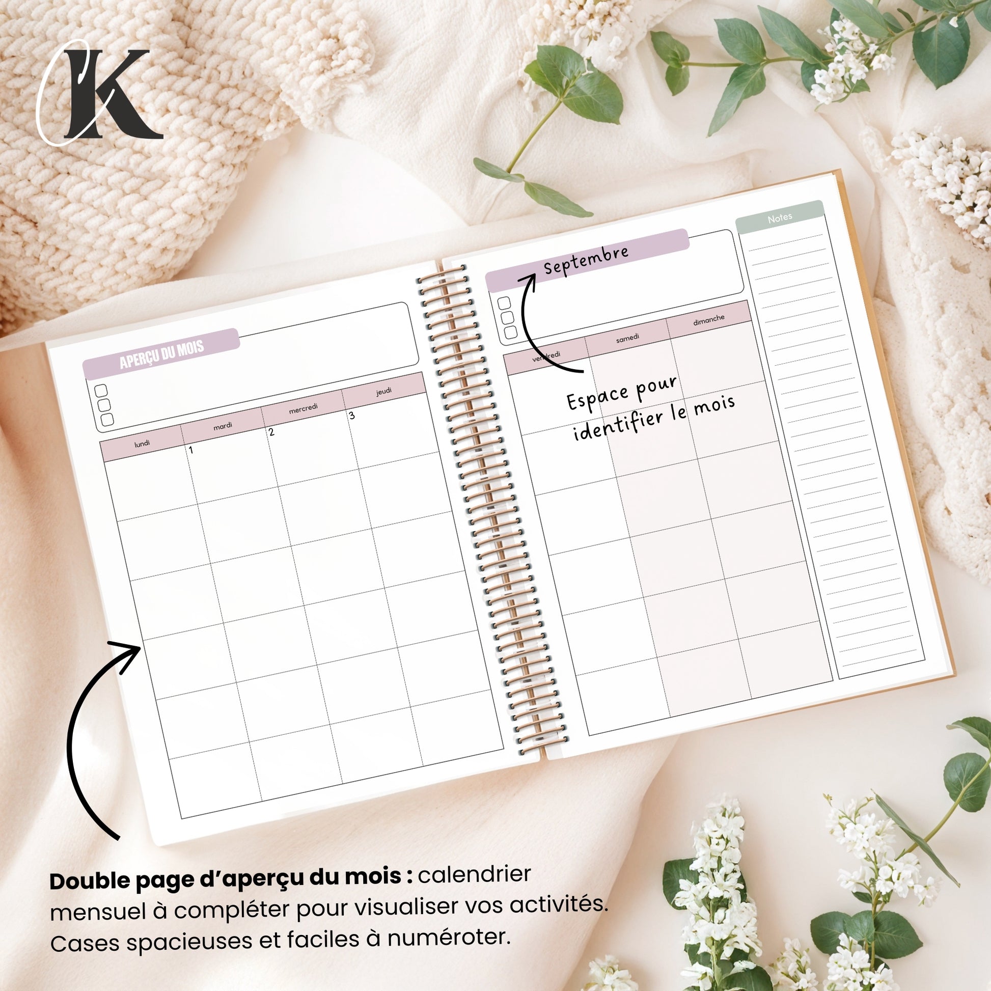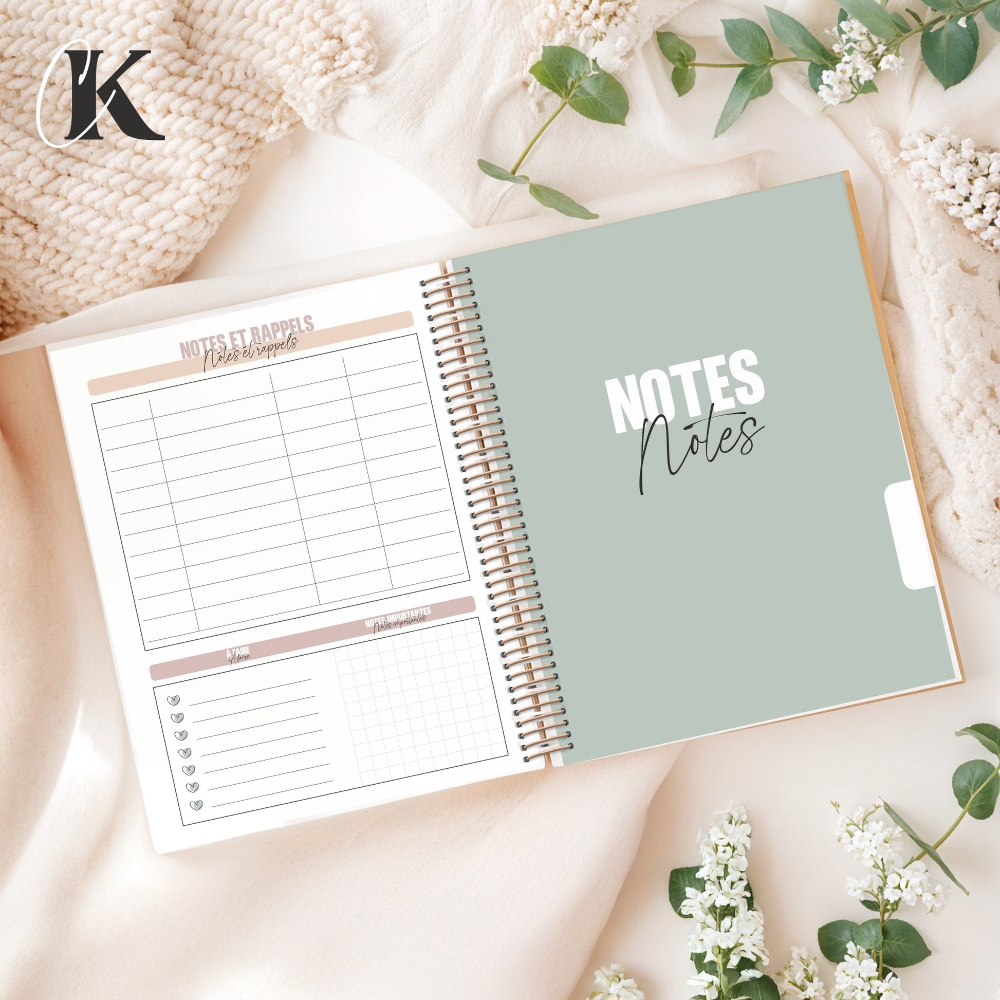 - Une page « Notes & rappels » stratégiquement placée (utilisable en début ou en fin de mois)