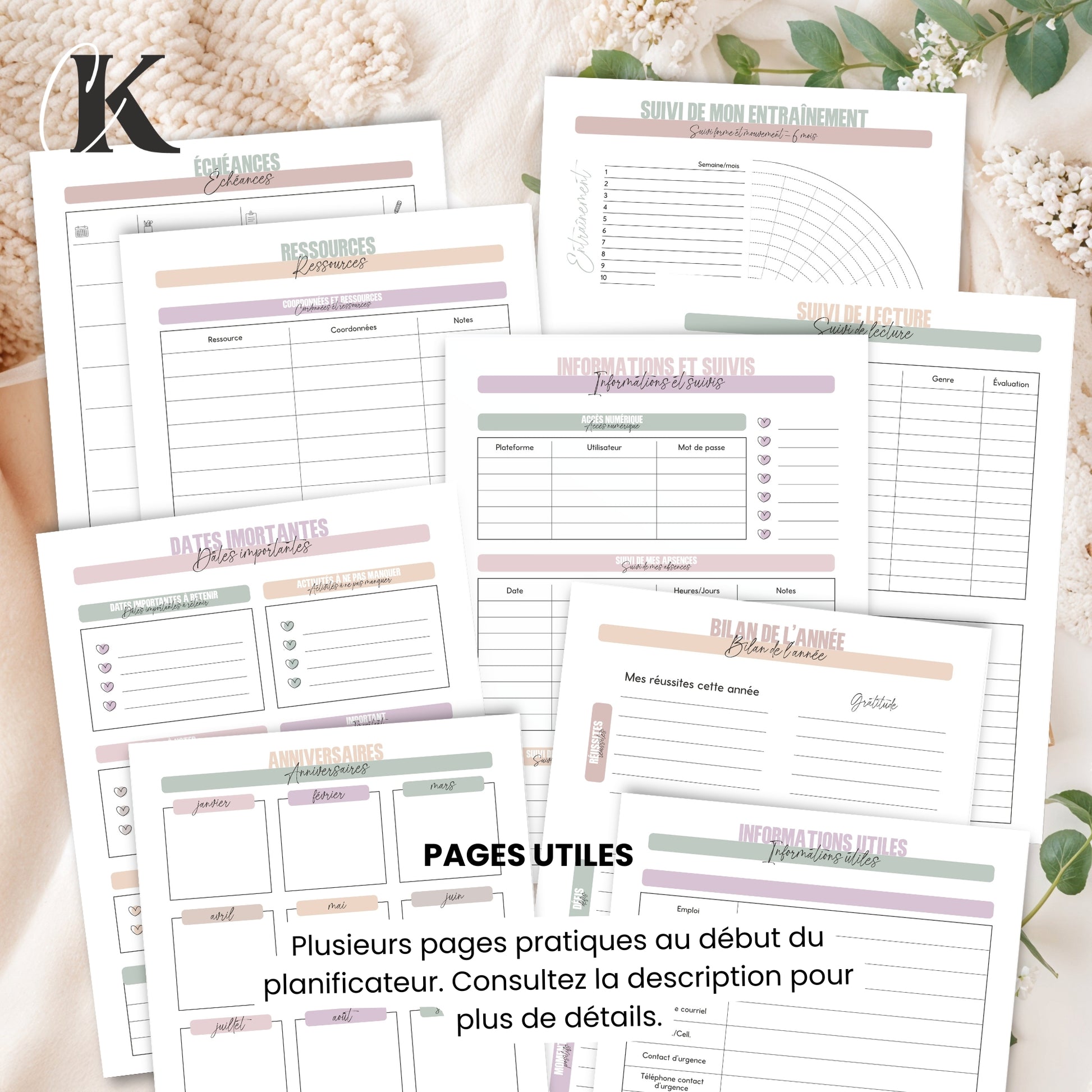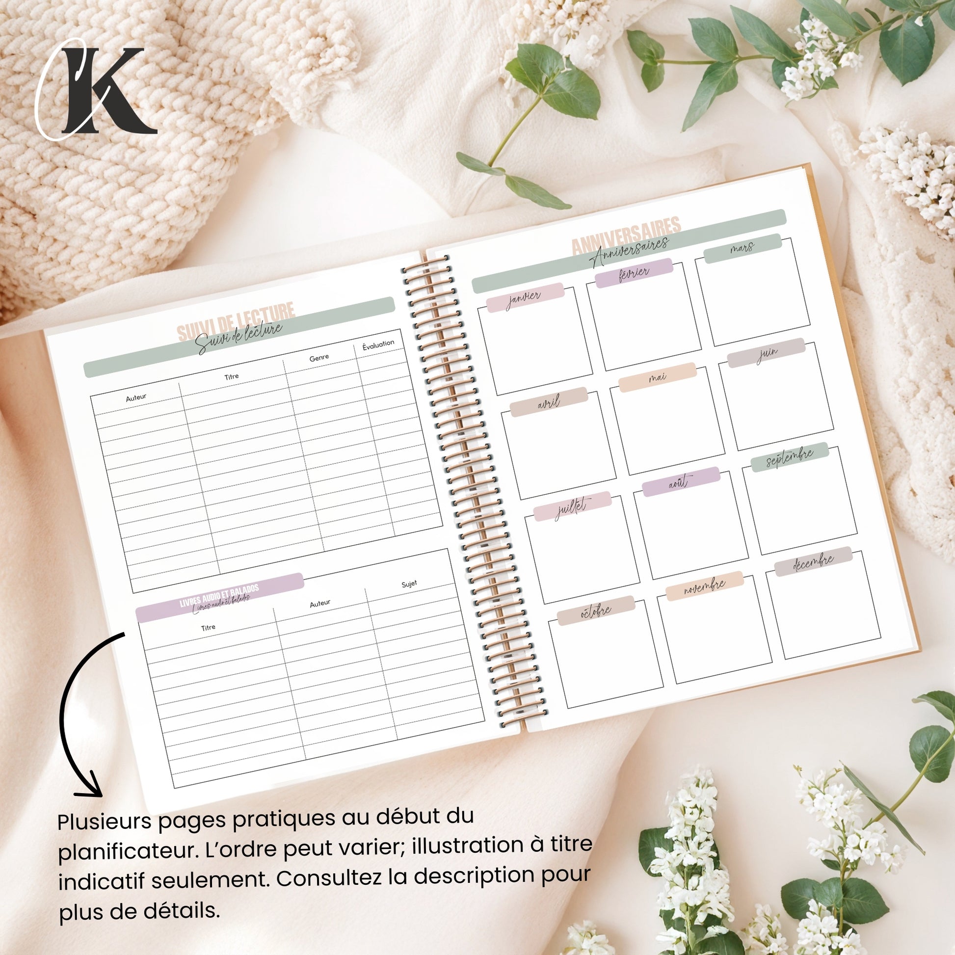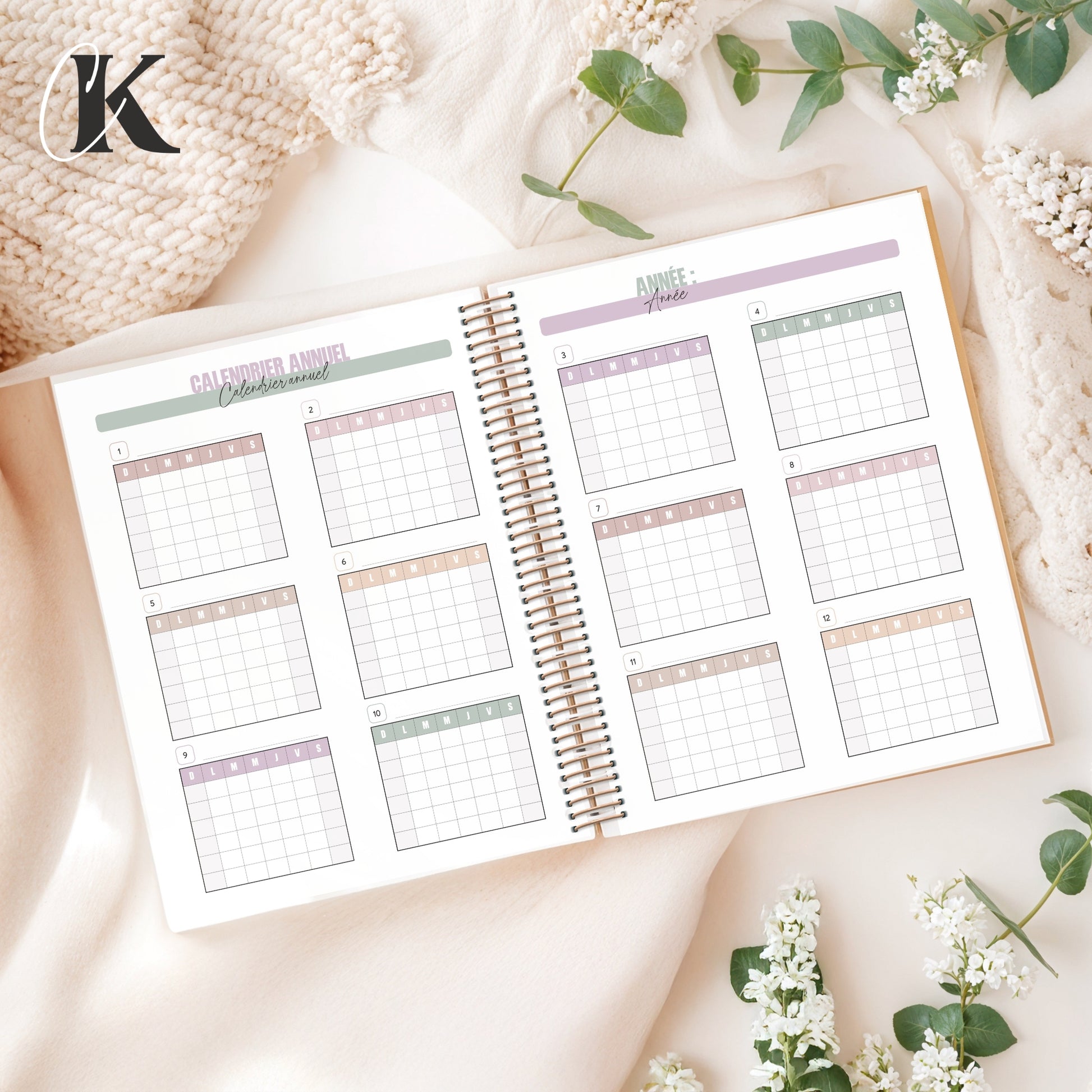 - Une page « Notes & rappels » stratégiquement placée (utilisable en début ou en fin de mois)